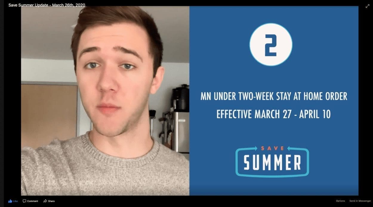 The Save Summer campaign encourages our community (especially us young folks) to stay home now so we can stop the spread of COVID-19 and actually enjoy our favorite summer activities–bonfires, camping, farmers markets–in a few months.