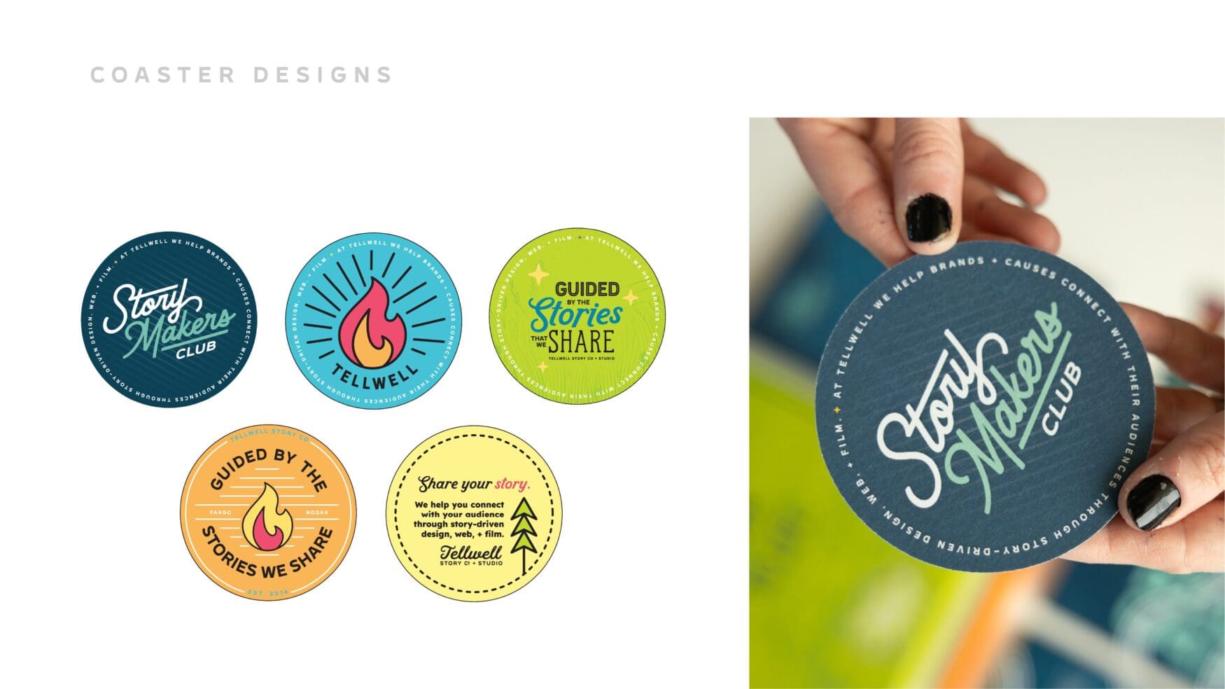 Storytelling happens in moments big and small, whether over coffee, in brainstorming sessions, or during deep conversations. Custom coasters and stickers bring a touch of Tellwell’s playful energy into everyday spaces, serving as small but meaningful reminders of the work we create together.